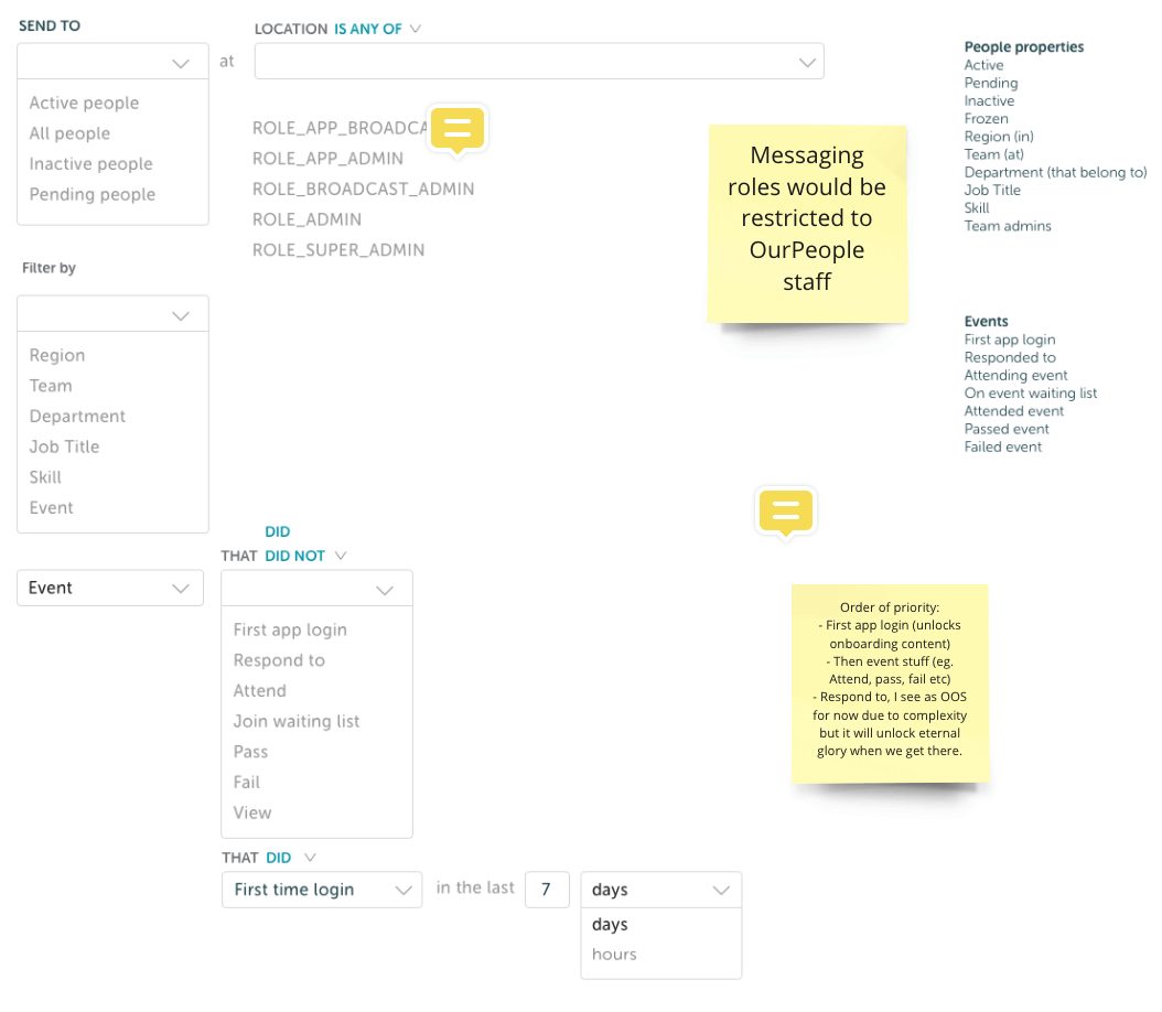 The settings area meant managers could create really simple audiences or get pretty specific if they wanted to. They would even have the ability to send to certain types of users like those new to the app, which was functionality we had never had before.